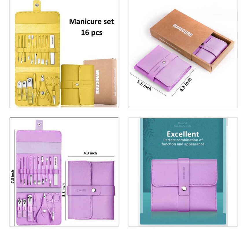 16PCS STAINLESS STEEL FULL-FUNCTION PEDICURE / MANICURE SET WITH LEATHER CASE
