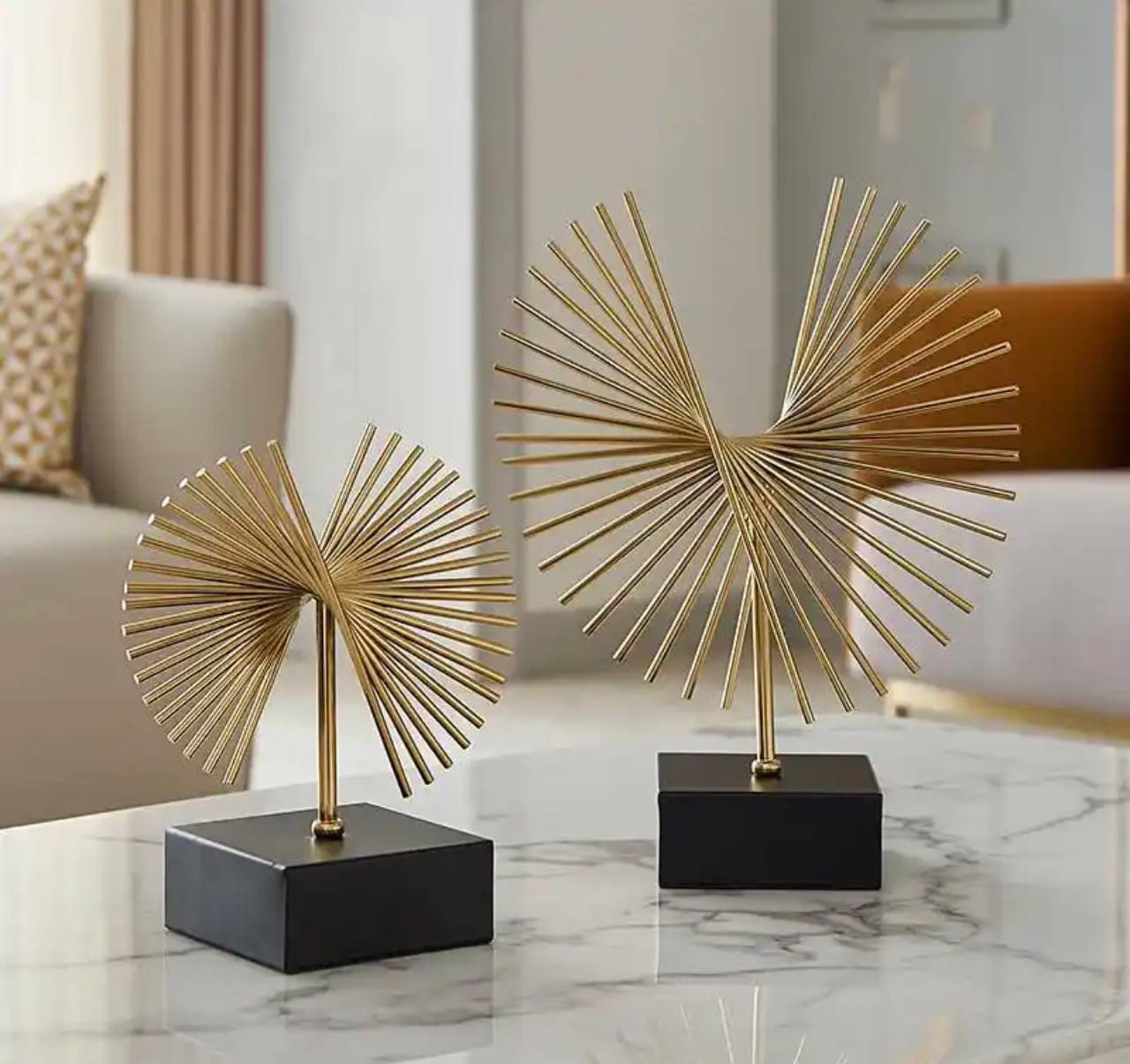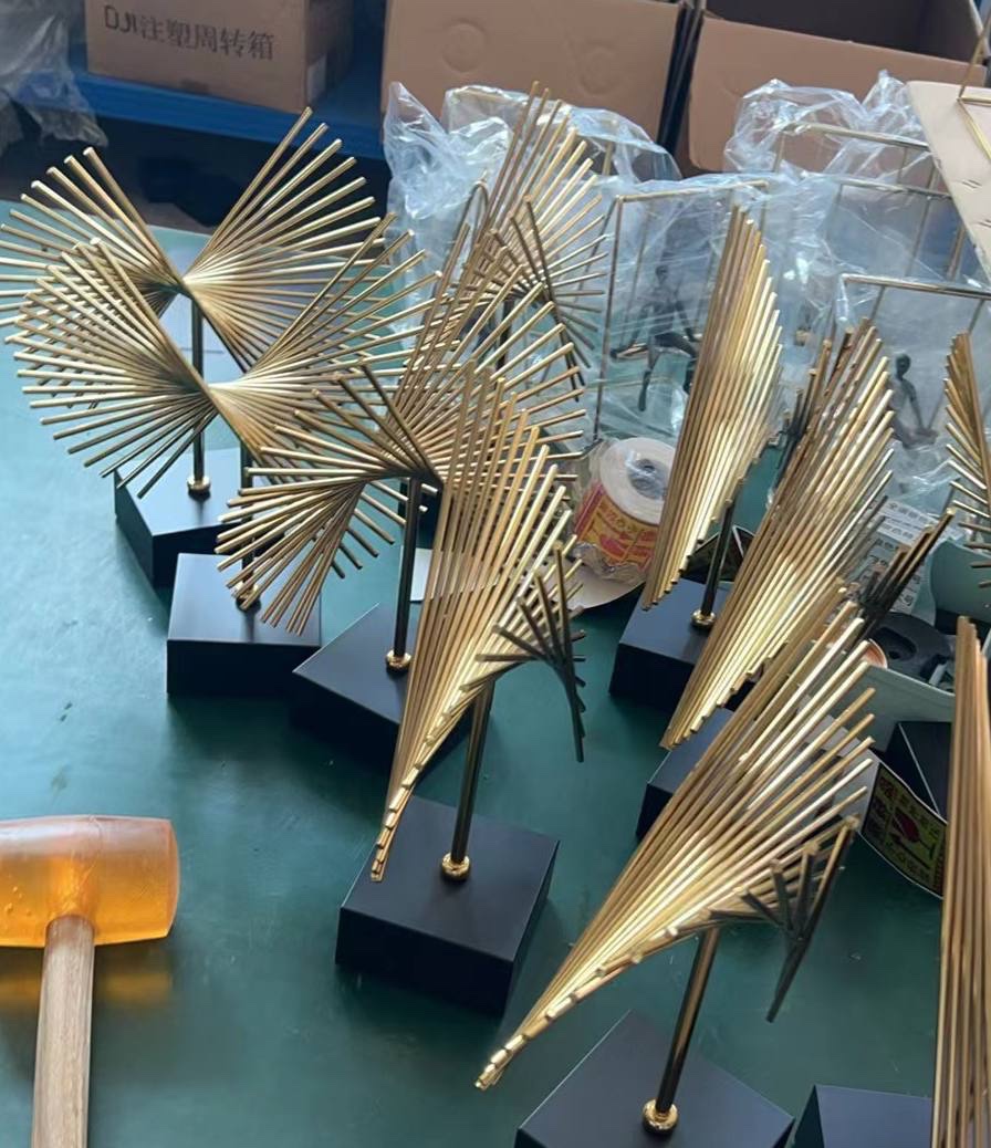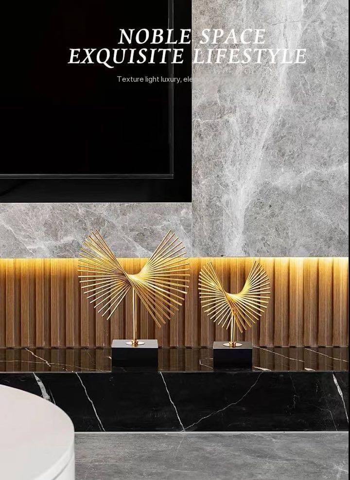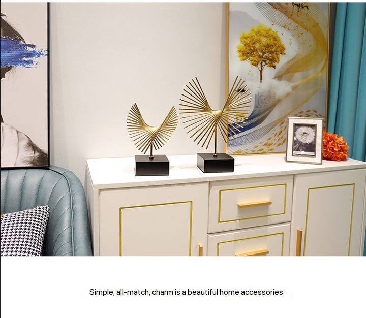 1PC METAL HANDICRAFT ABSTRACT GOLDEN GEOMETRIC FLY-WING ORNAMENT STATUE – MODERN LUXURY HOME DECORATION (INTERIOR DECOR 005)
