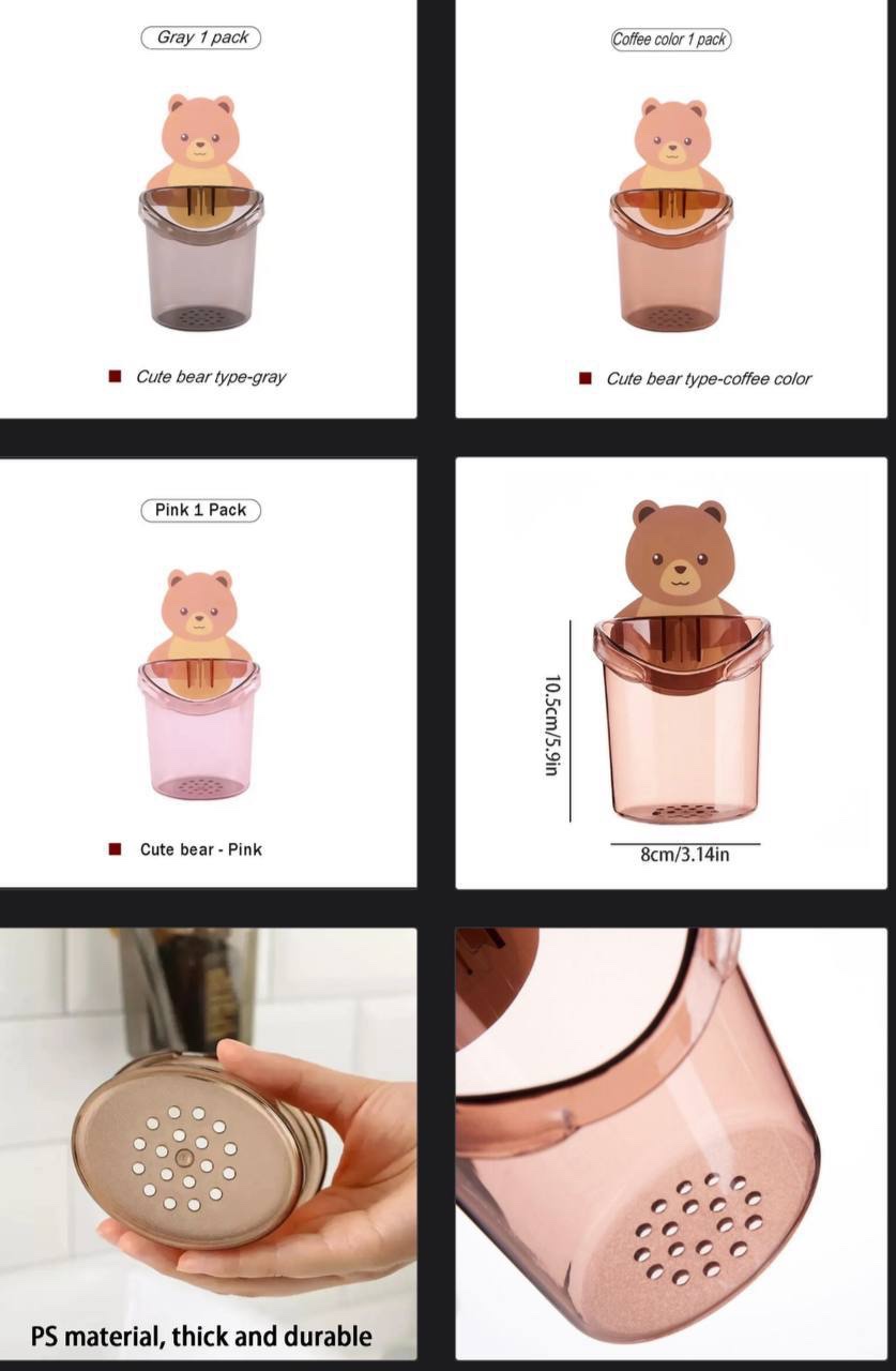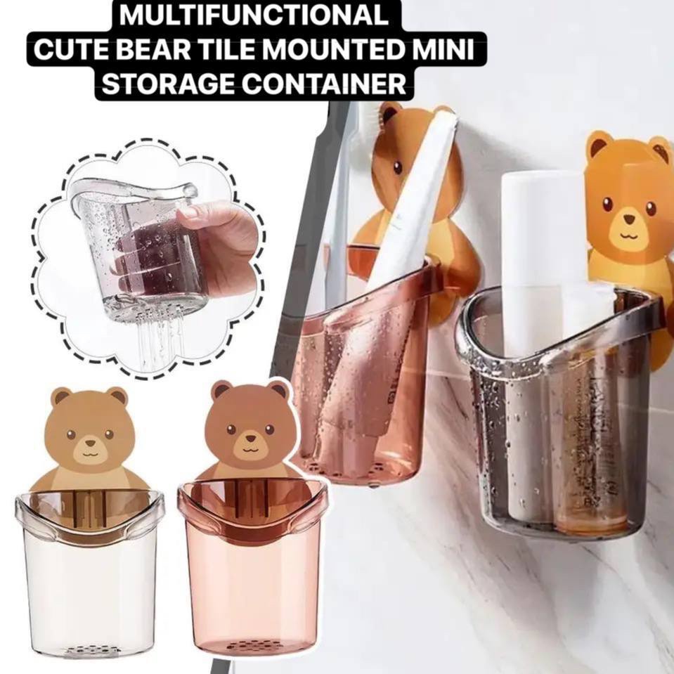 1PC MULTIFUNCTIONAL CUTE BEAR TILE-MOUNTED MINI STORAGE CONTAINER