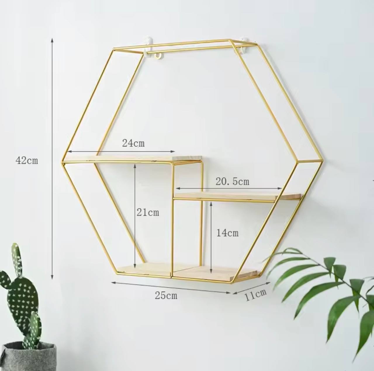 1PC NORDIC GOLD ‘HEXAGON’ METAL LUXURY WALL DECOR STORAGE RACK