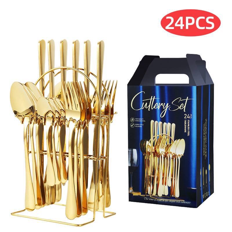 24PCS LUXURY GOLD STAINLESS STEEL CUTLERY SET