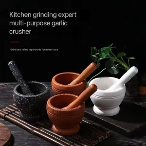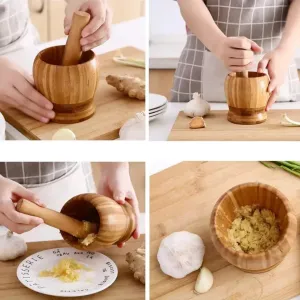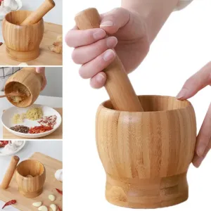 2PCS/SET MULTIPURPOSE WOODEN MORTAR & PESTLE AS KITCHEN/BEAUTY TOOL