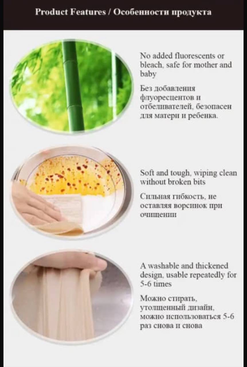 2PCS/SET OKFAD MULTIPURPOSE REUSABLE ABSORBENT BAMBOO CLEANING TISSUE