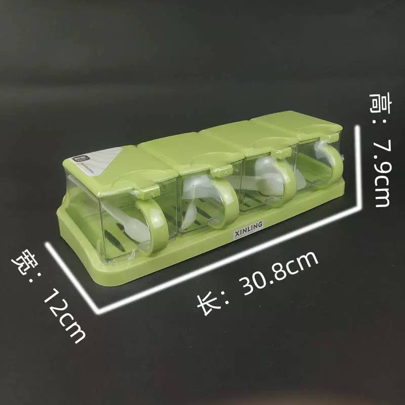 Neatly store and serve your everyday spices with this transparent, moisture-proof 4-compartment seasoning jar set designed for convenience and a tidy kitchen.