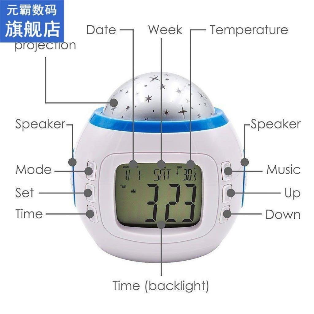BATTERY-OPERATED STARRY PROJECTION LIGY WITH MUSIC, THERMOMETER & ALARM CLOCK