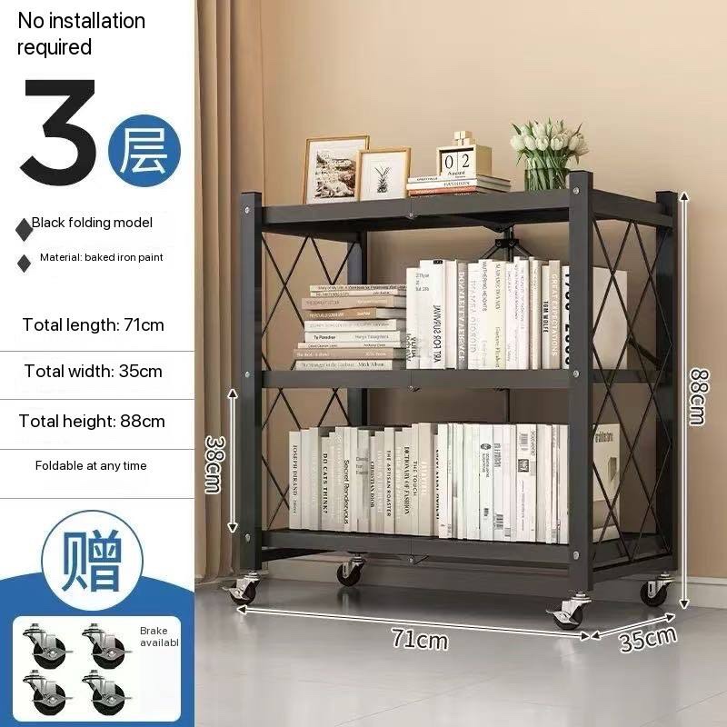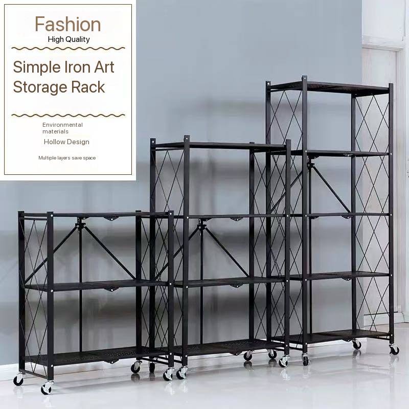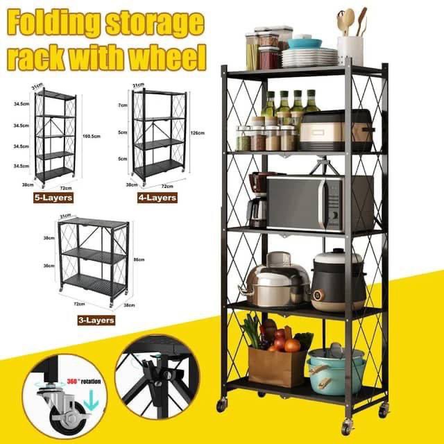 BLACK HEAVY DUTY METAL MULTIFUNCTIONAL FOLDABLE STORAGE SHELF RACK