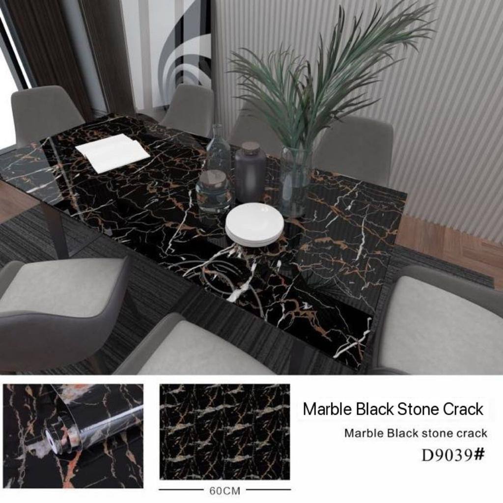 CLASSIC MARBLE BLACK STONE CRACK VINYL FILM SELF-ADHESIVE DECORATIVE WALLPAPER
