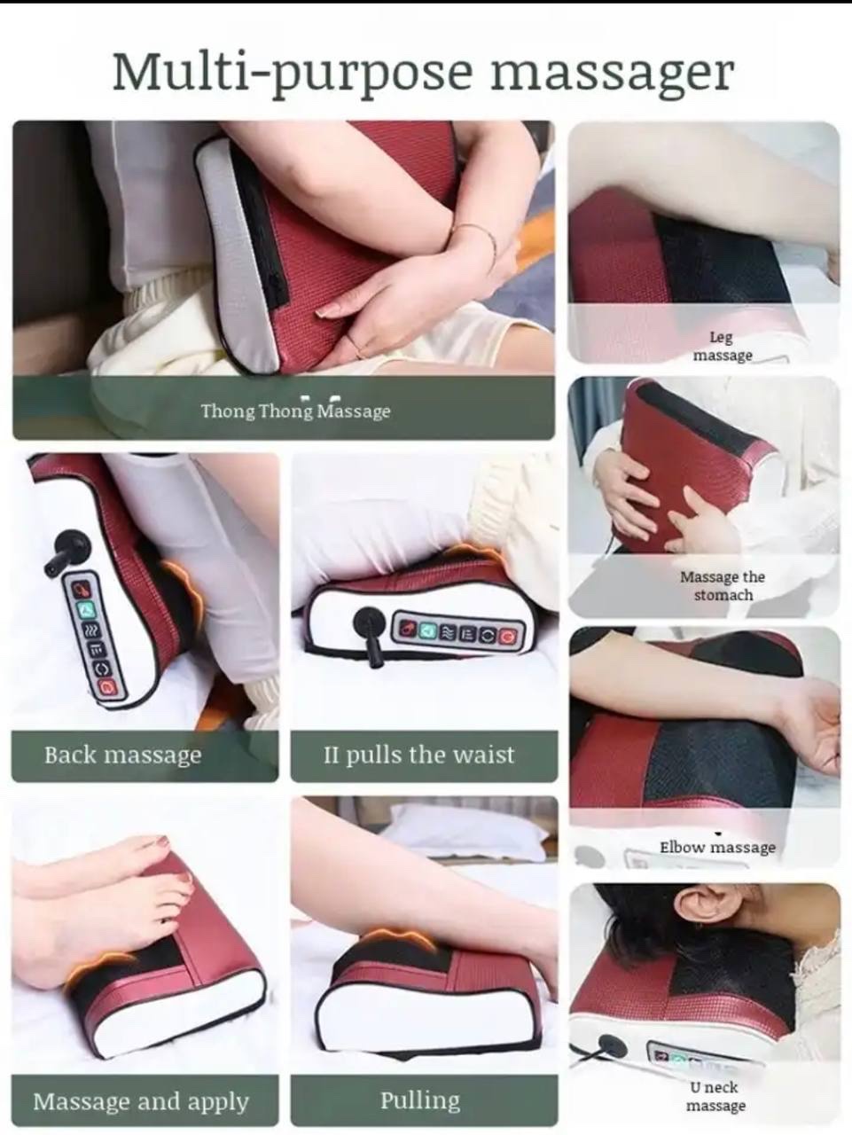 ELECTRIC MULTIFUNCTIONAL HOT COMPRESS SHOULDER, LUMBAR, WHOLE BODY CAR / HOME MASSAGER —MASSAGE PILLOW
