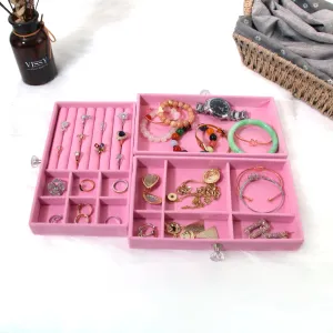 FLANNELETTE 3-DRAWER ACRYIC JEWELRY BOX ORGANIZER (PINK)