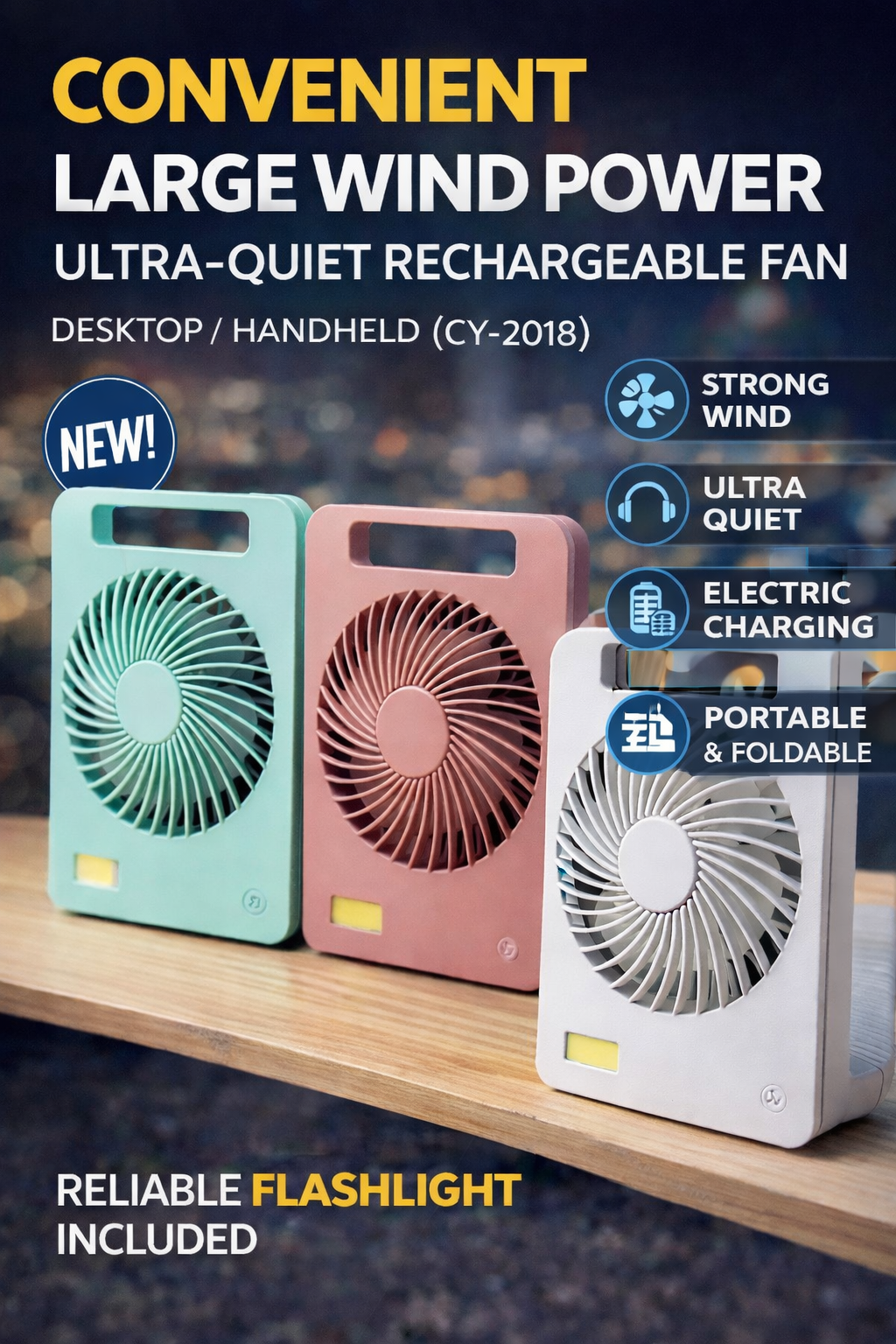 HIGH QUALITY CONVENIENT LARGE WIND POWER ULTRA-QUIET DESKTOP / HANDHELD RECHARGEABLE FAN (CY-2018)
