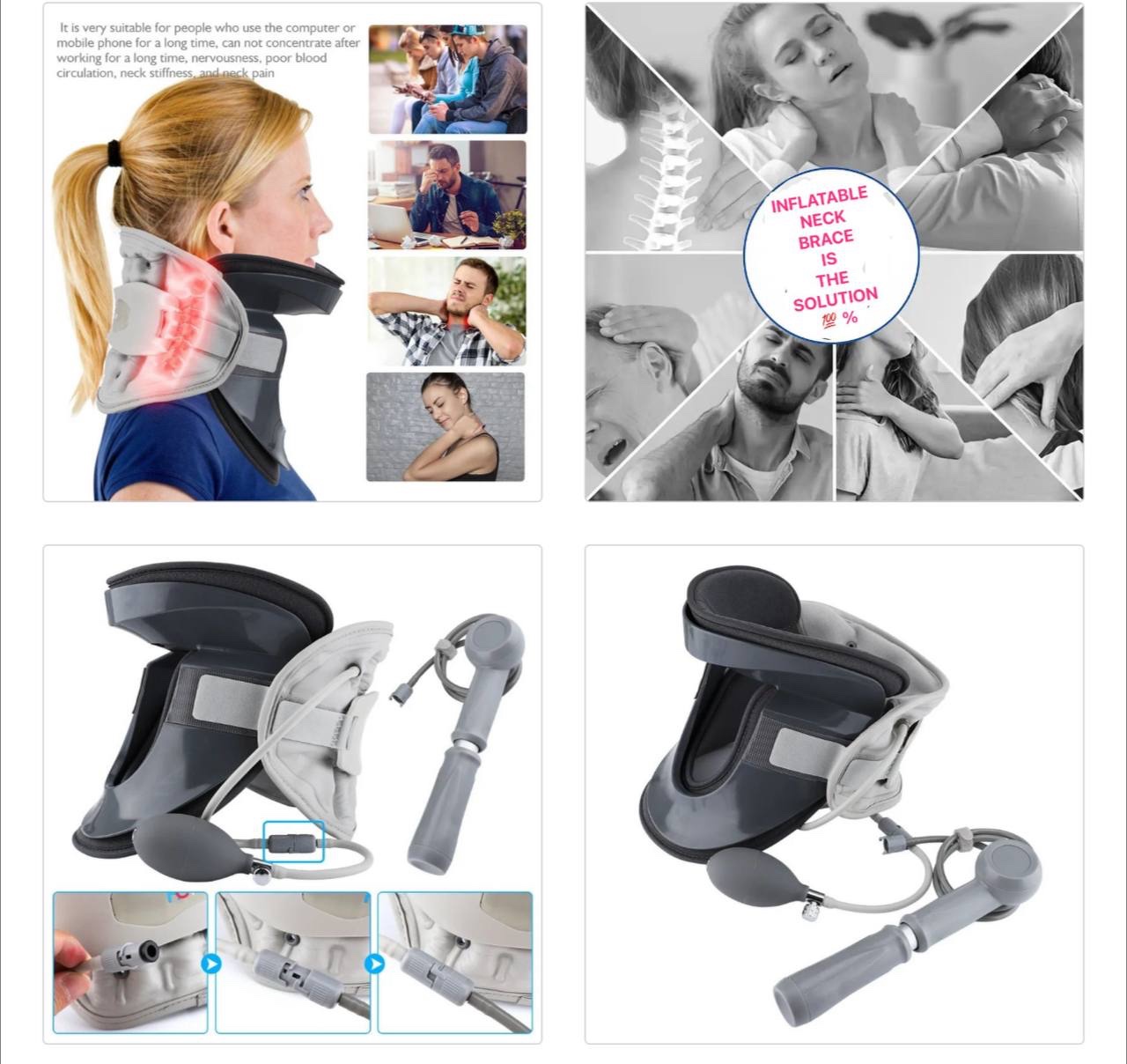 INFLATABLE ADJUSTABLE NECK BRACE RETAINER / CERVICAL NECK TRACTION COLLAR + FREE MANUAL PUMP(HAILICARE BRAND)