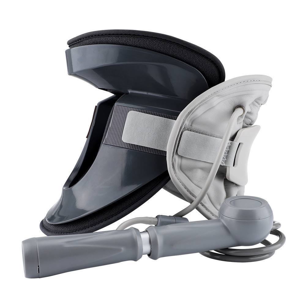 Provides cervical traction to relieve neck pain, stiffness, and muscle cramps