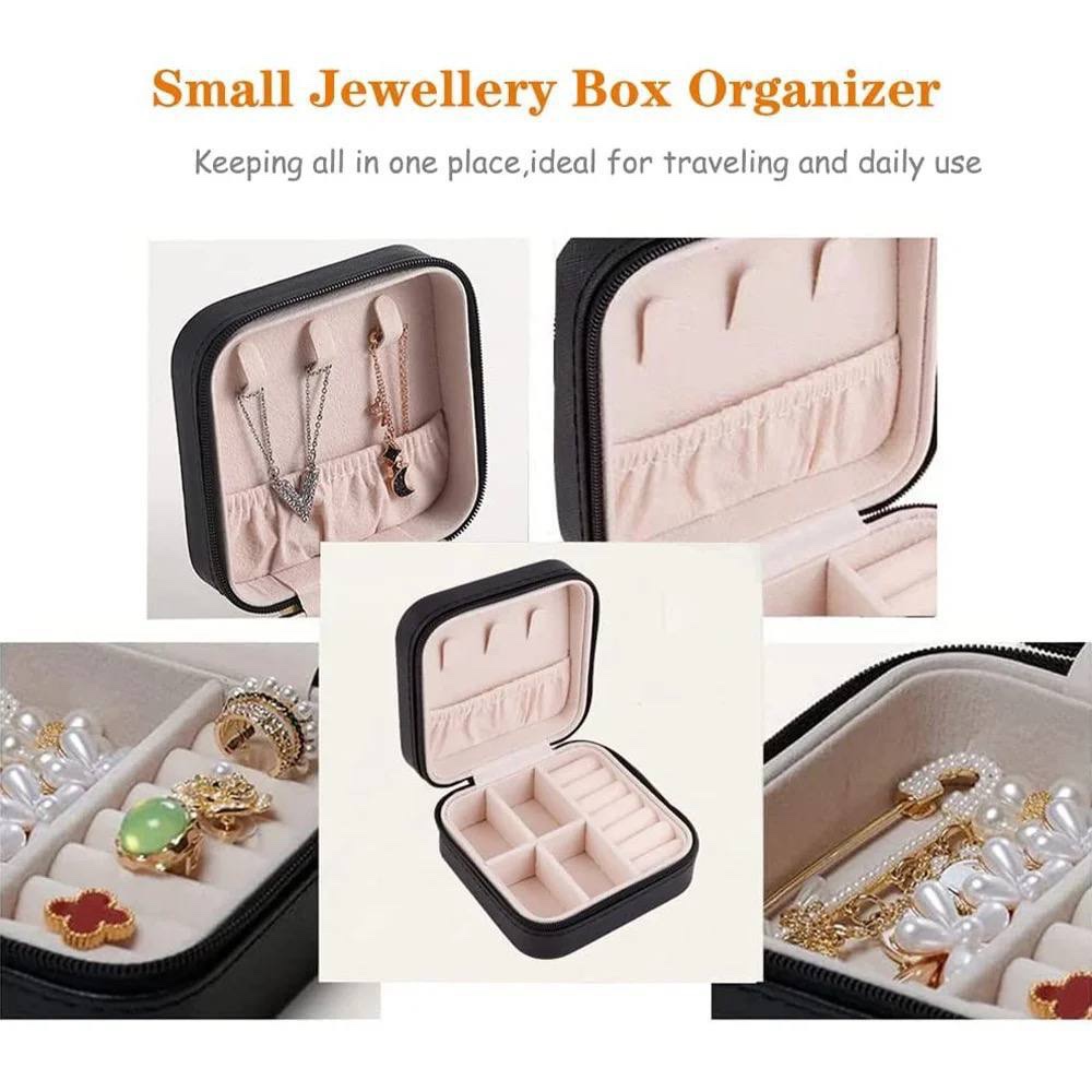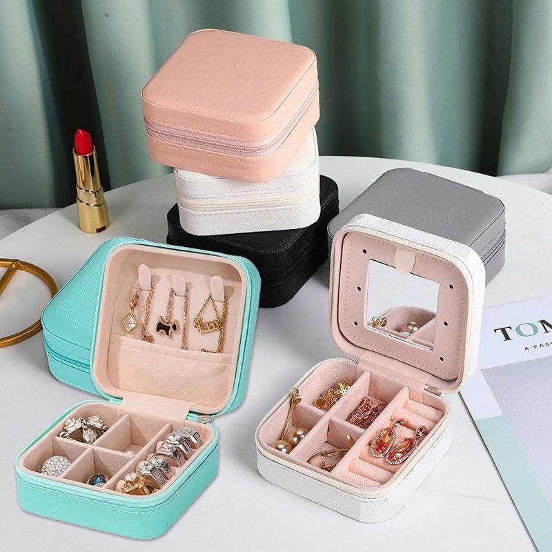 PORTABLE LEATHER SQUARE BOX JEWELRY ORGANIZER