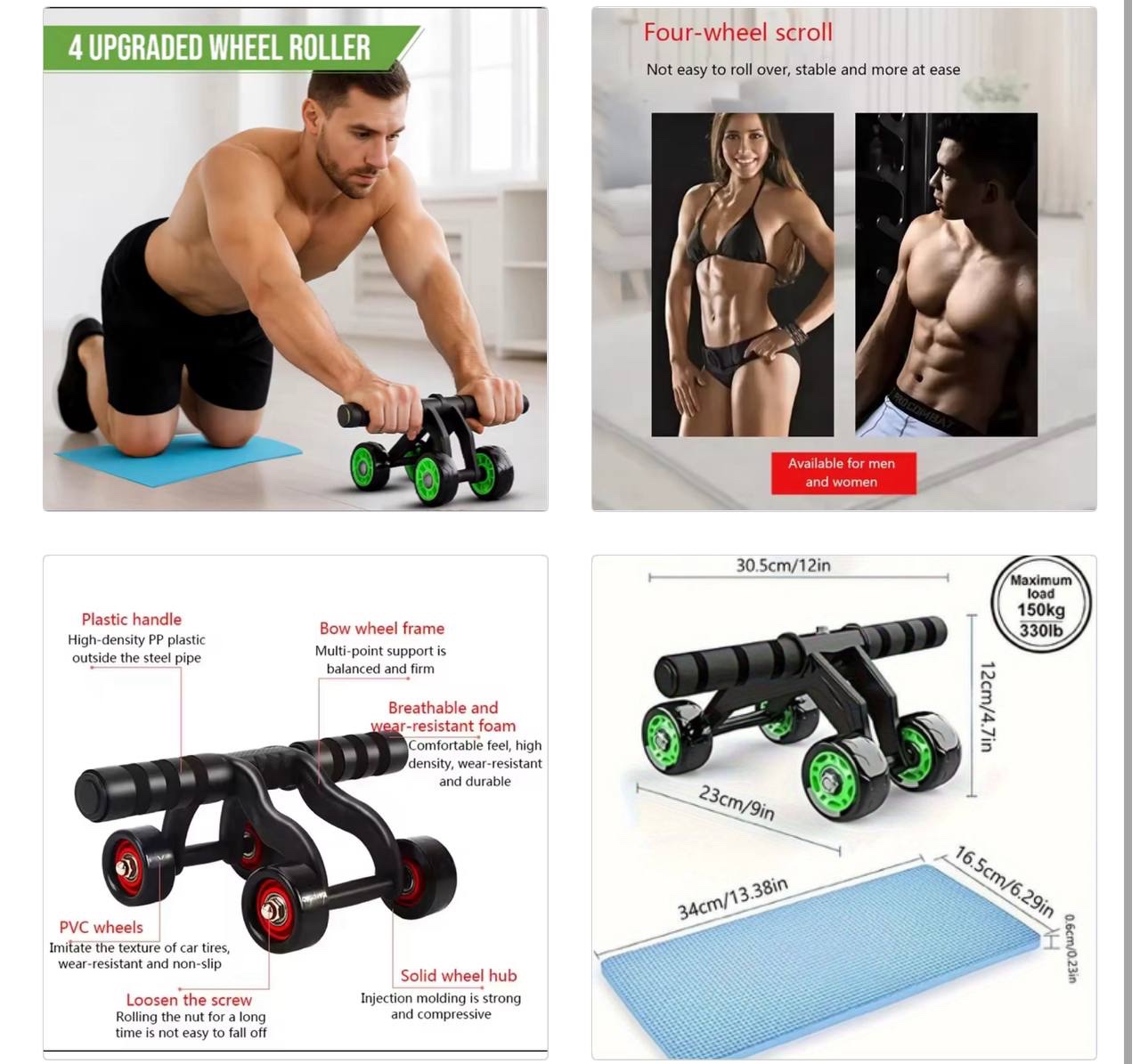 The ROLL MAX 4-Wheel Ab Roller Trainer is a compact, multifunctional fitness tool designed to support effective core workouts from the comfort of your home. Its stable four-wheel design offers better balance and control, making it suitable for beginners and advanced users alike.