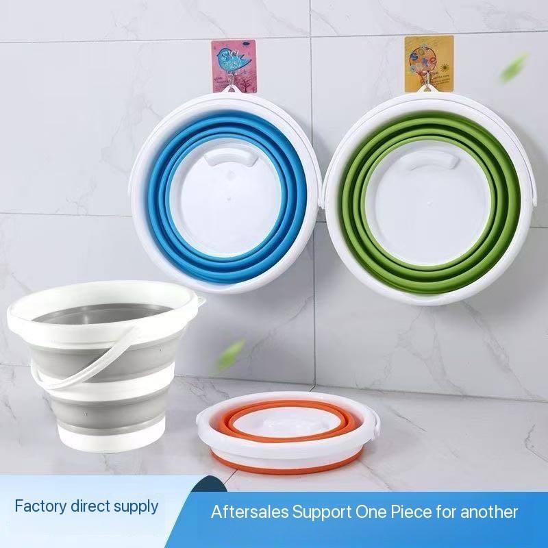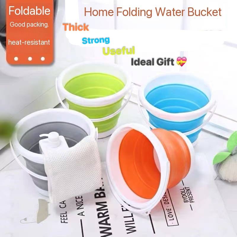 Made from durable silicone that can expand when in use and fold flat when not needed. It’s popular for home cleaning, car washing, camping, fishing, and travel because it saves space and is lightweight.