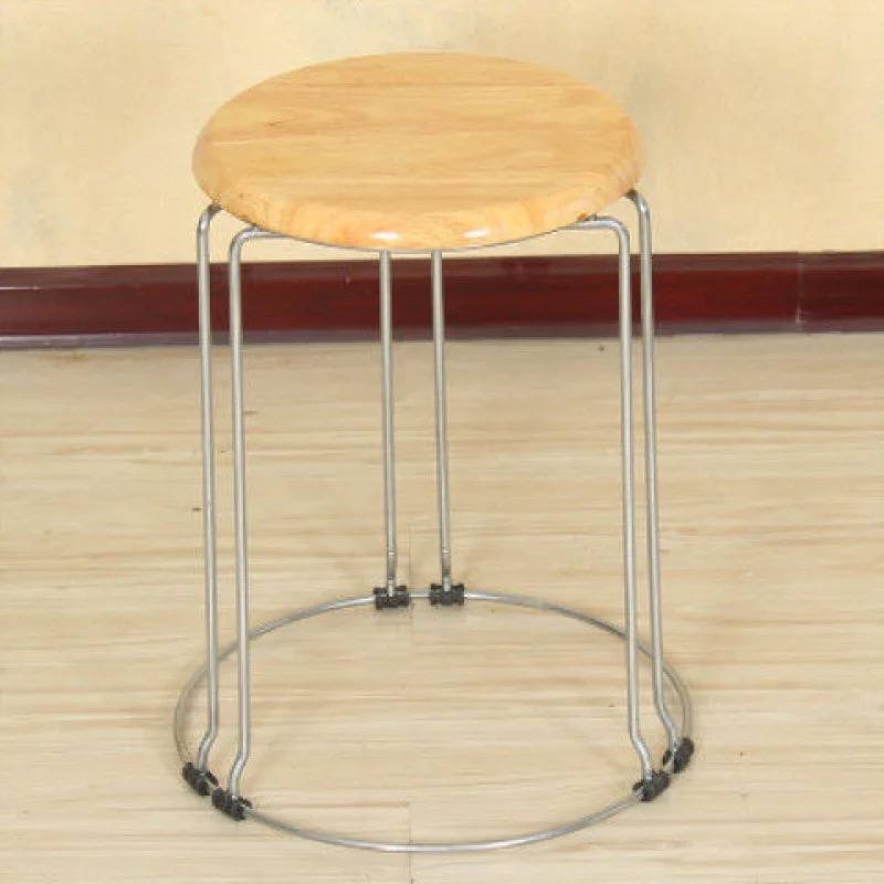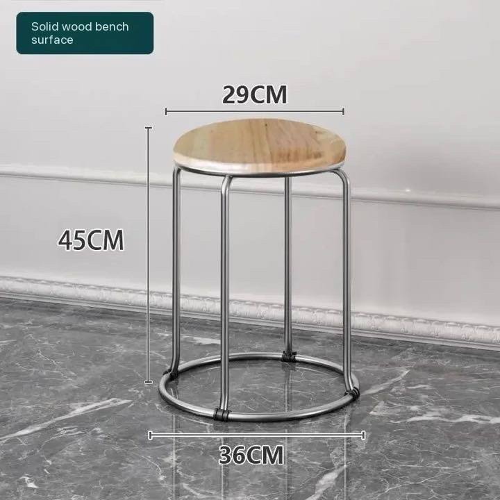 A round stool with a wooden seat and wrought-iron frame is a durable furniture piece designed for homes, restaurants, offices, and cafés. The solid wood seat provides comfort, while the iron frame gives strong support and long lifespan.